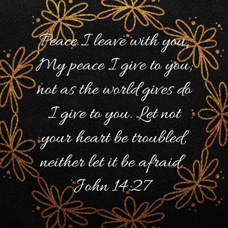 Peace I leave with you, My peace I give to you; not as the world gives do I give to you. Let not your heart be troubled, neither let it be afraid.